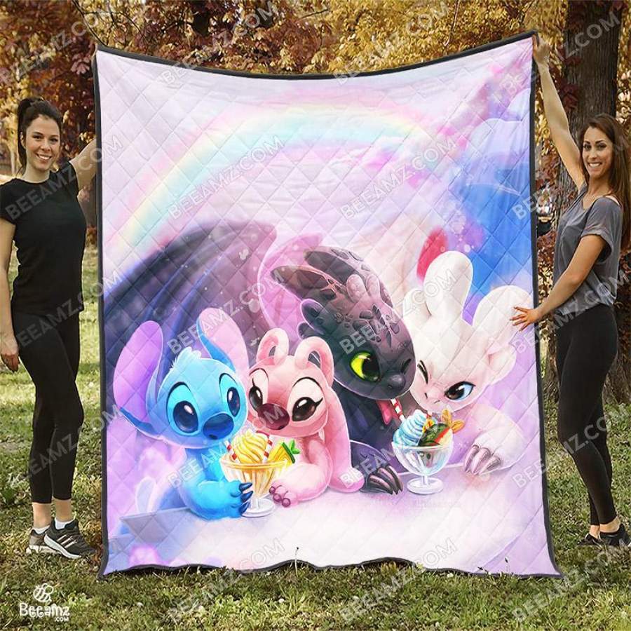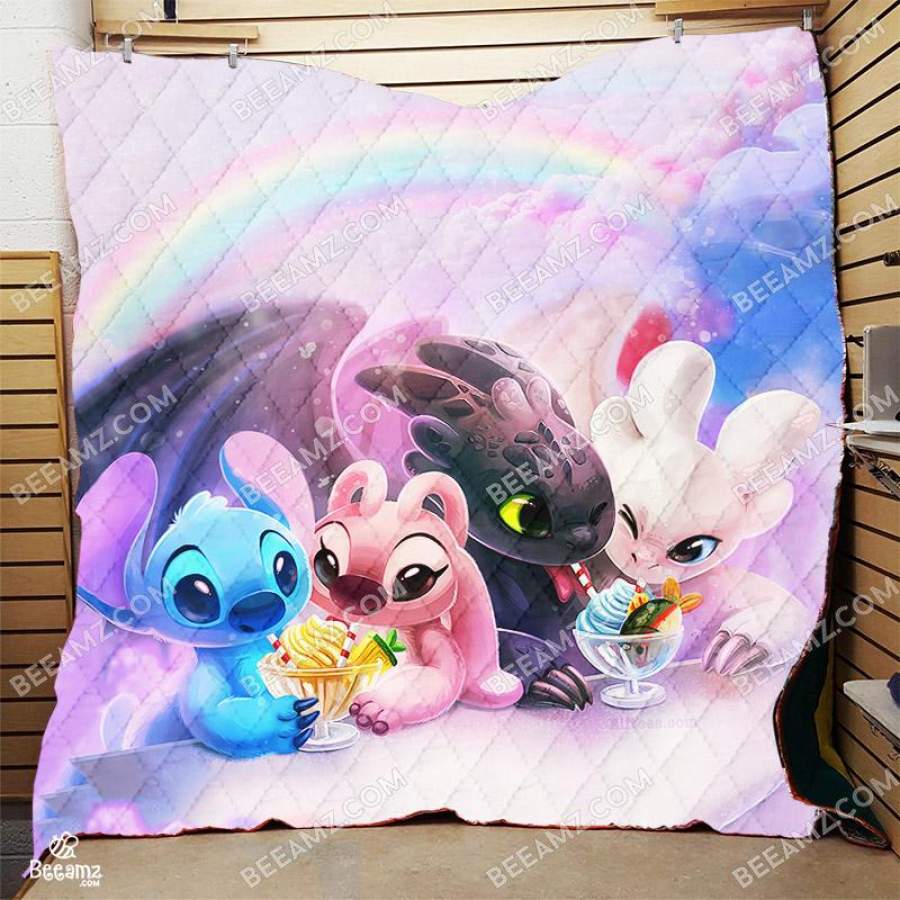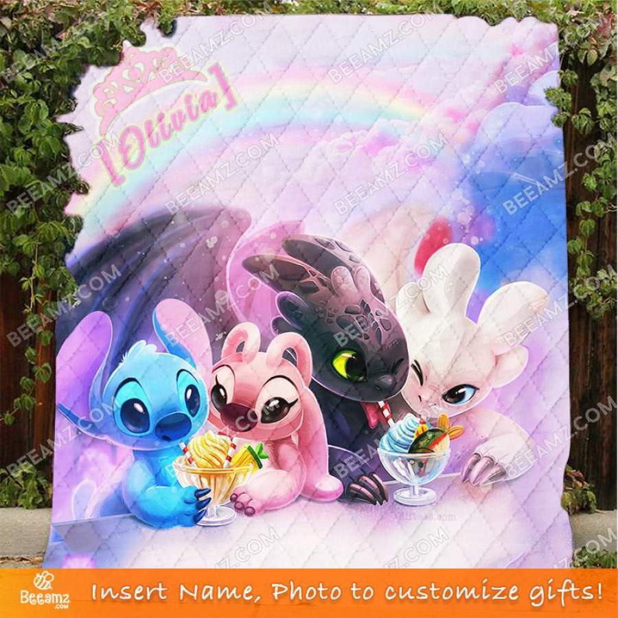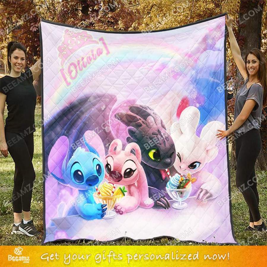 Toothless Dragon Stitch Couple Cute Personalized Quilt Blanket – Rainbow Name Changing Quilts – TD47