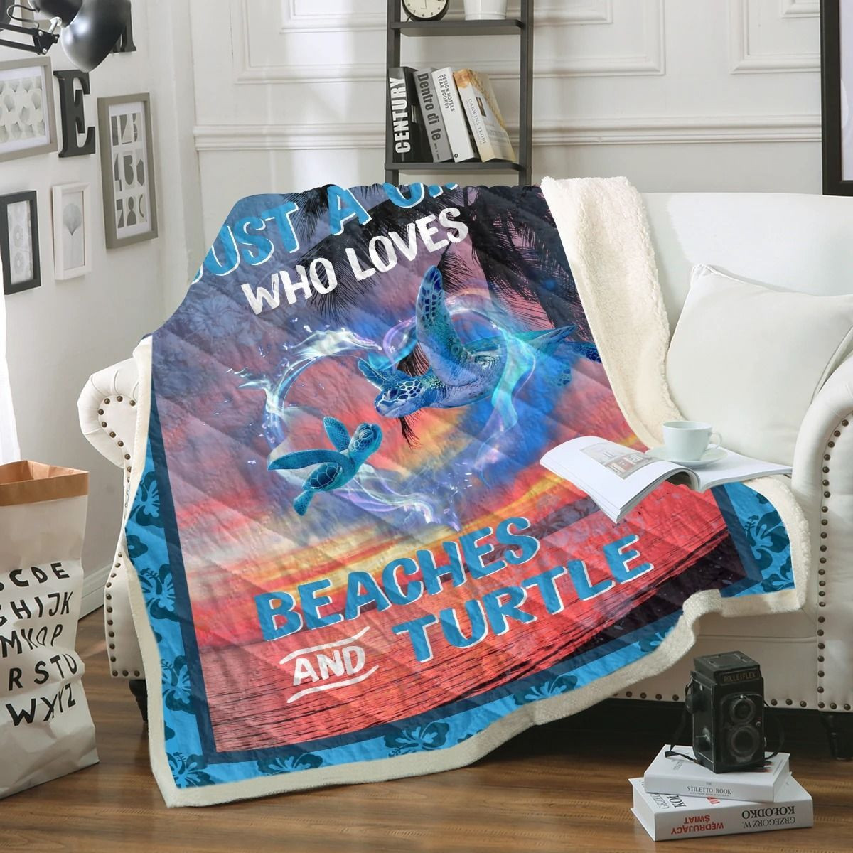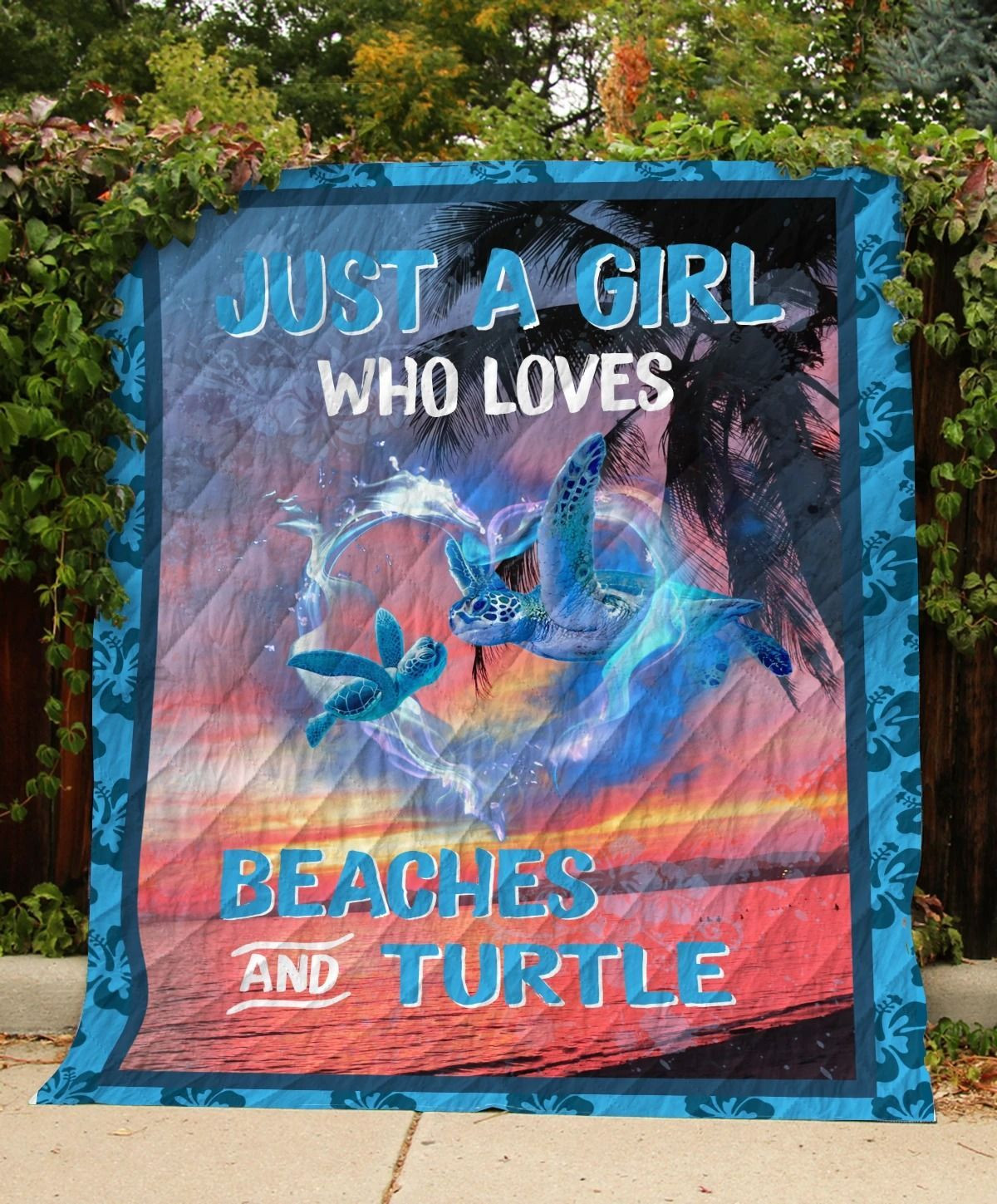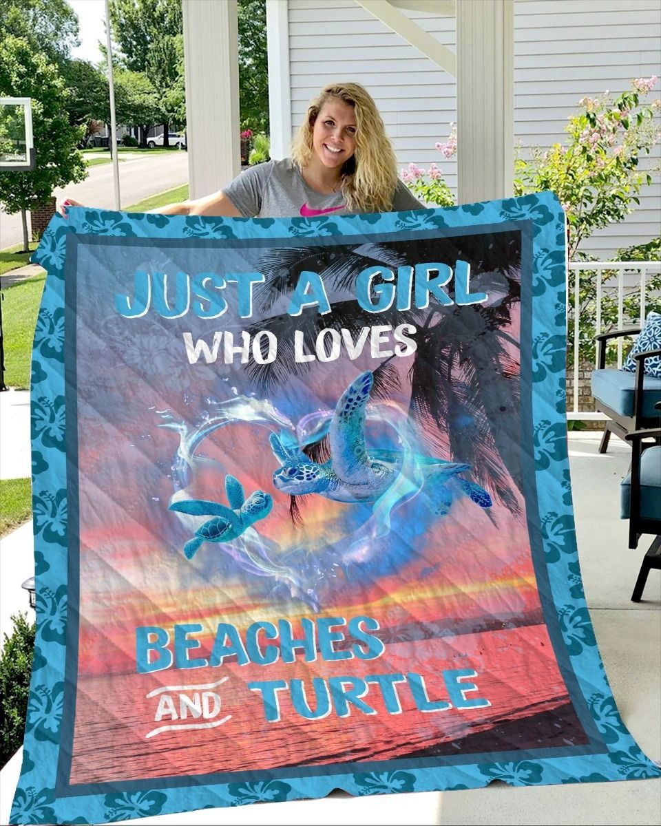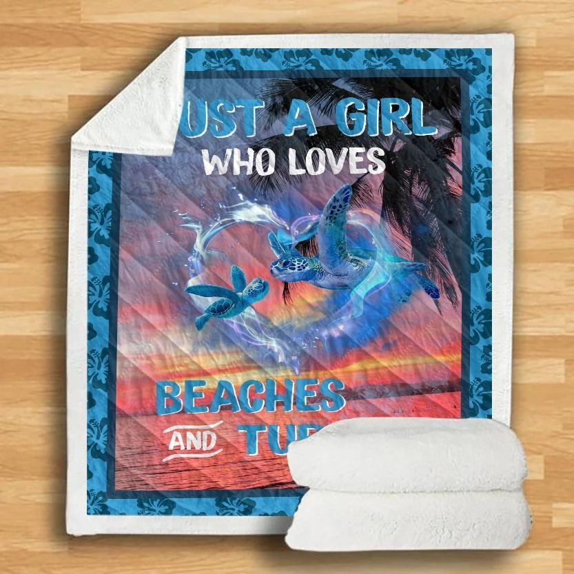 Turtle At Sunset Just A Girl Who Loves Beaches And Turtle Quilt & Fleece Blanket Thhtr08052004