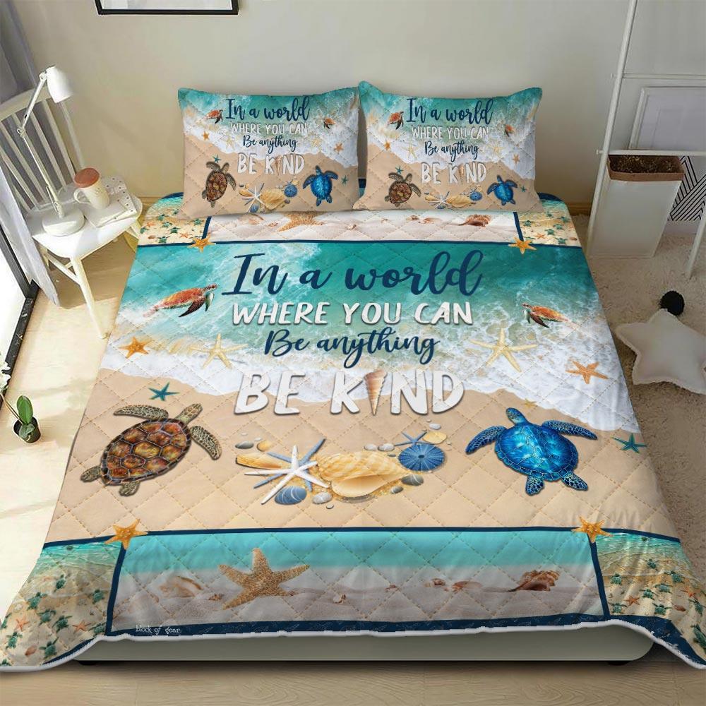 Turtle Be Kind Hippie Coast Quilt Blanket In A World Where You Can Be Anythin