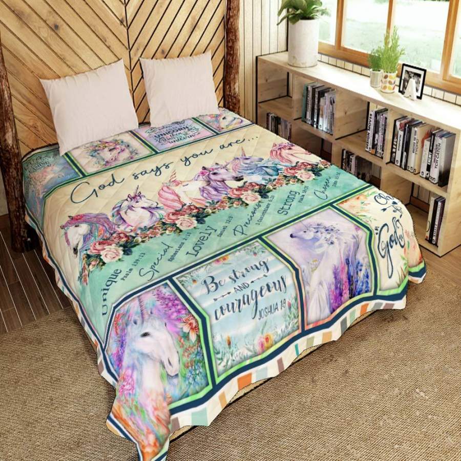 Unicorn Quilt Blanket God Says You Are Unicorn Decor Unicorn Gift Unicorn Quil Christmas Gift Ideas