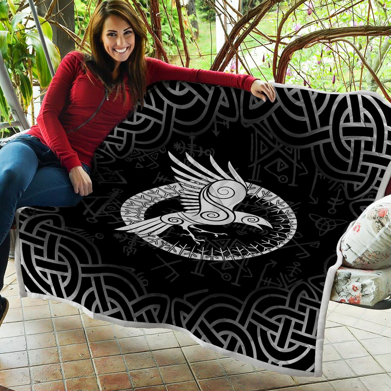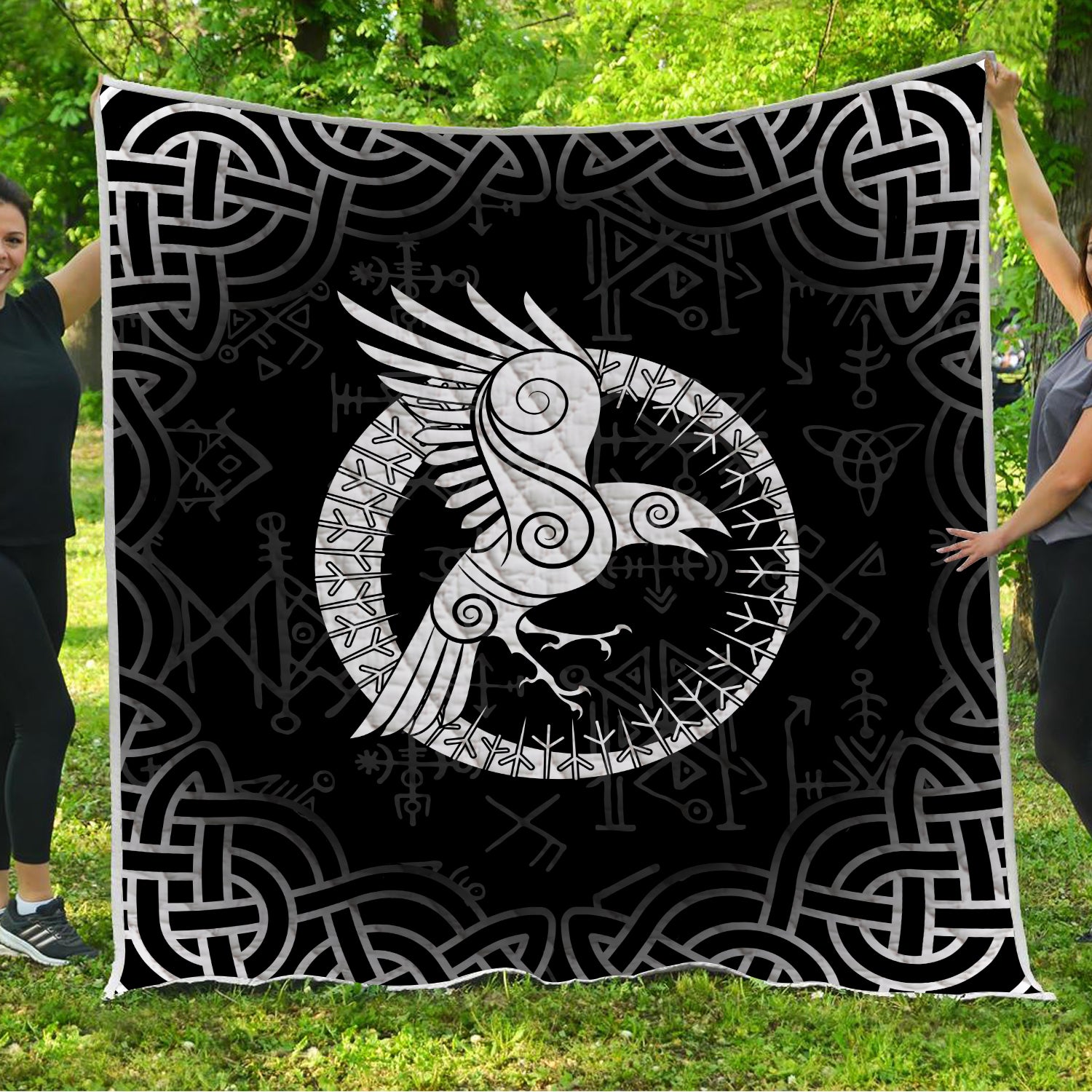 Viking Raven Art Scandinavian Norse Runes Quilt Blanket.