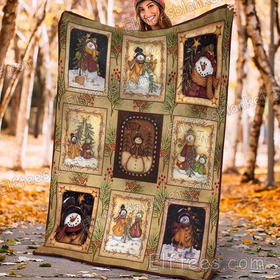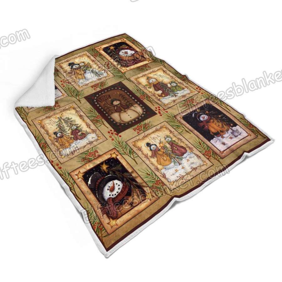 Vintage Themed Christmas Snowman 3D PrintedFleece Blanket – Gift for Christmas – XMAS04