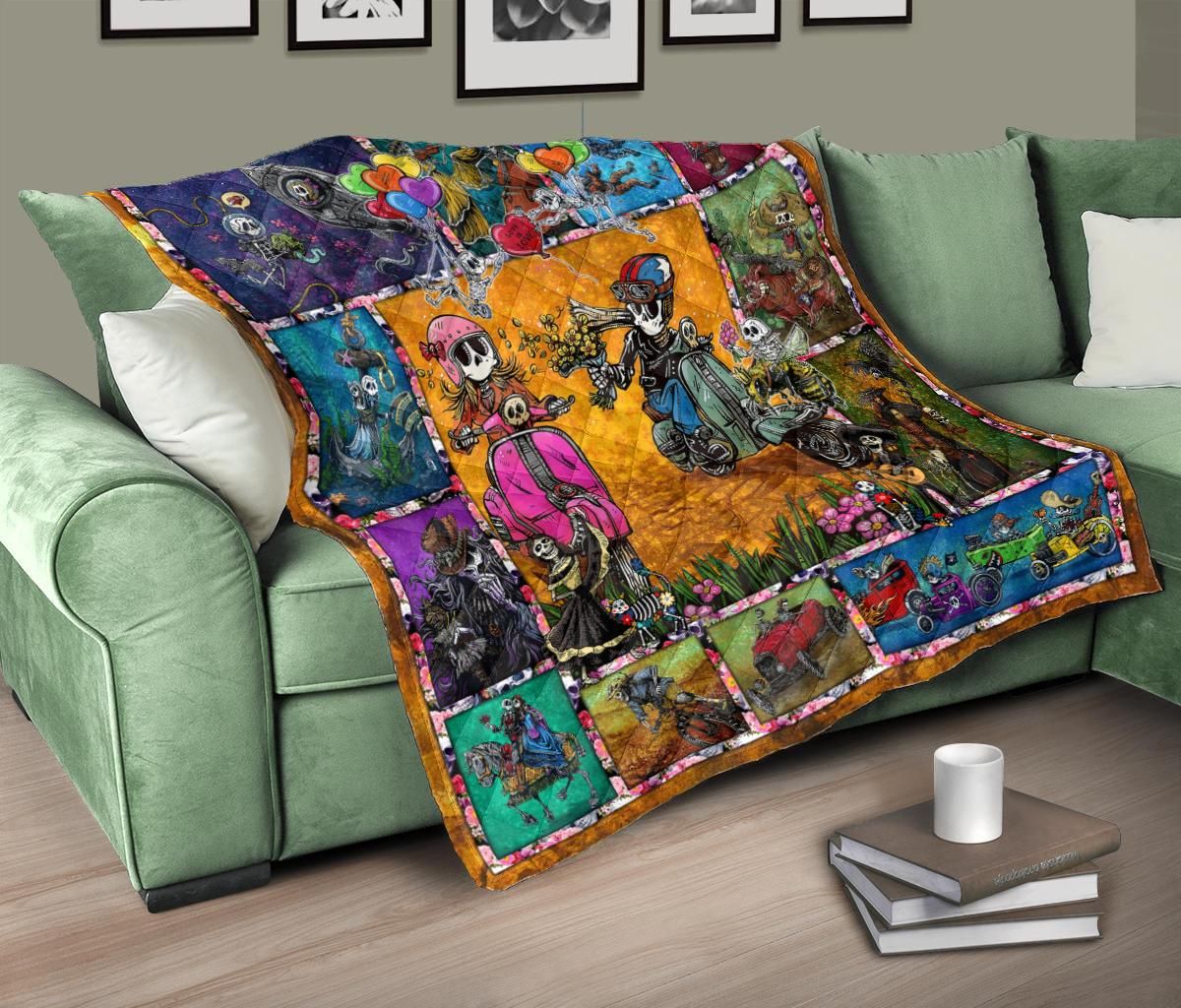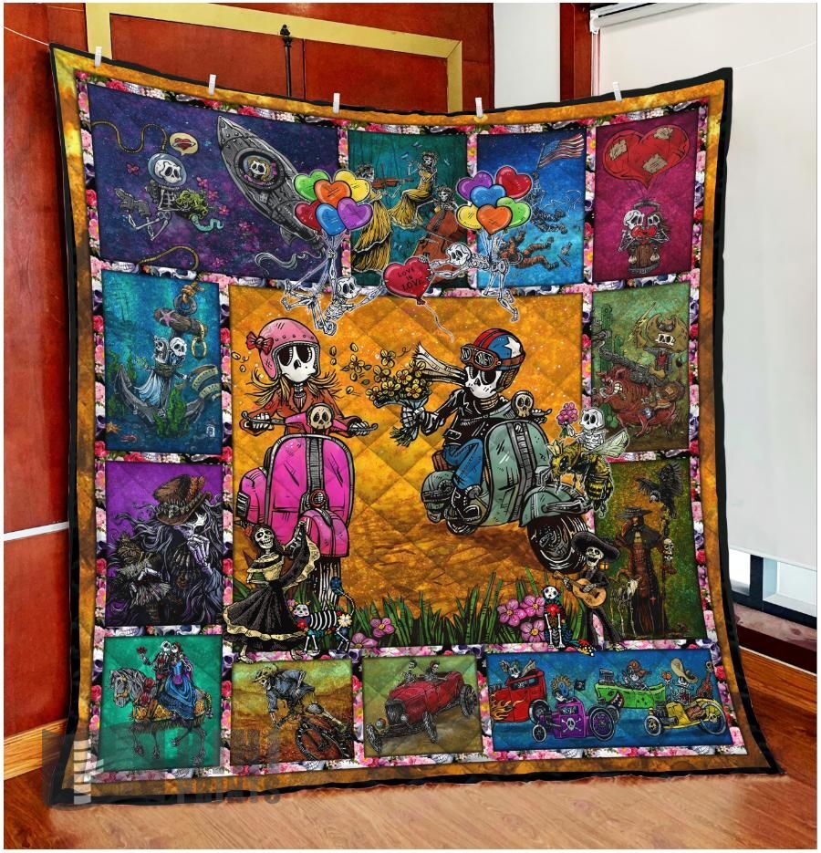 Vintage Vespa Skull Couple Quilt Blanket Jjw10082004-Tqh
