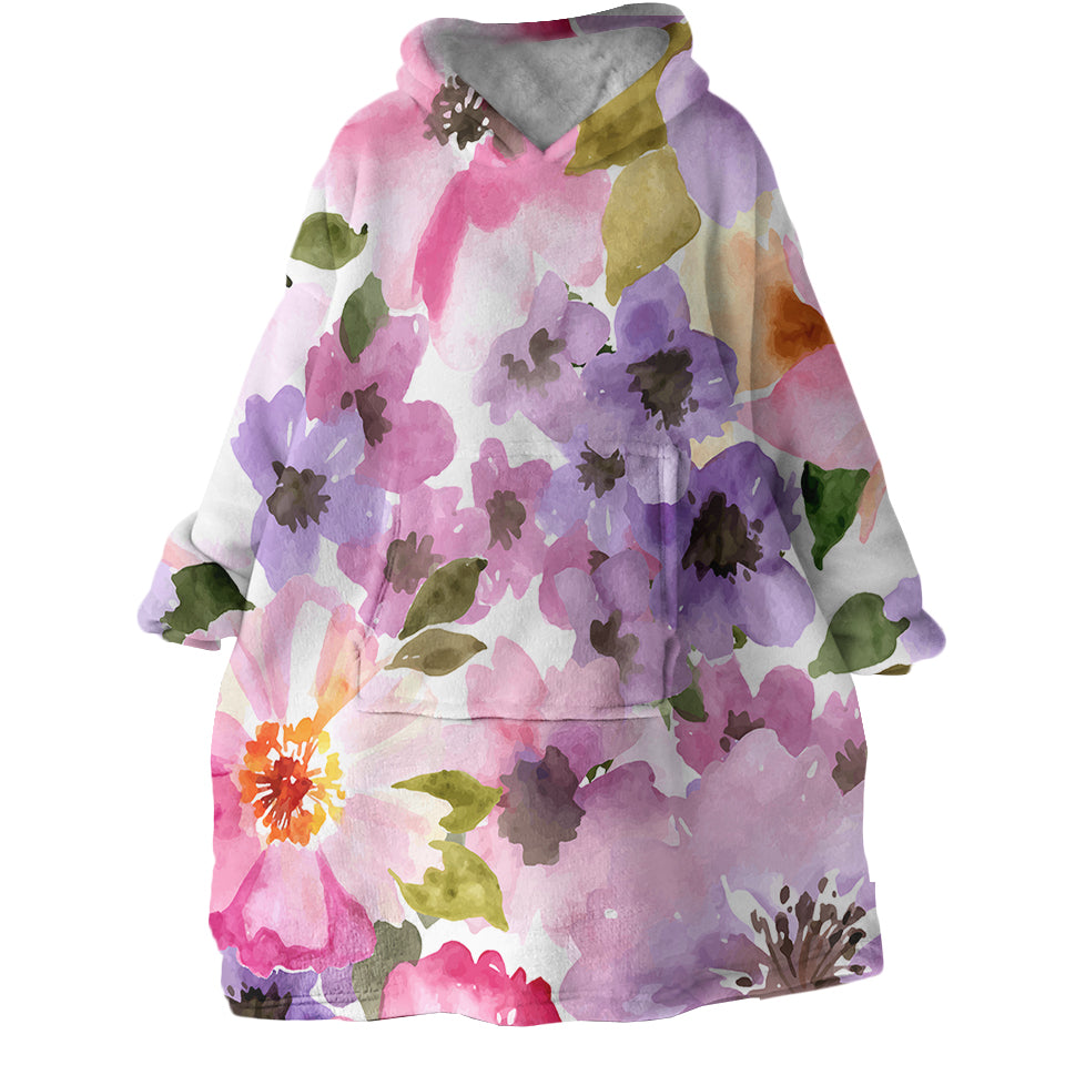 Watercolored Flowers Swlf0628 Hoodie Wearable Blanket