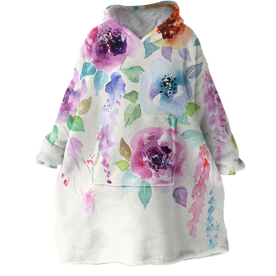Watercolored Roses Swlf0482 Hoodie Wearable Blanket