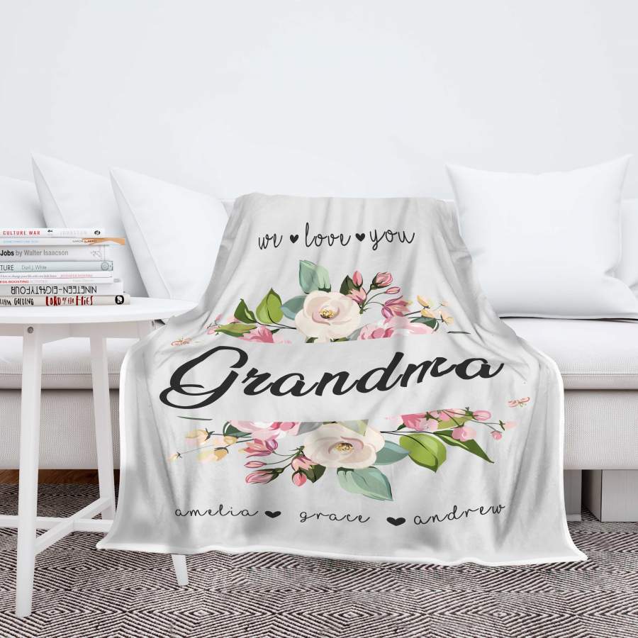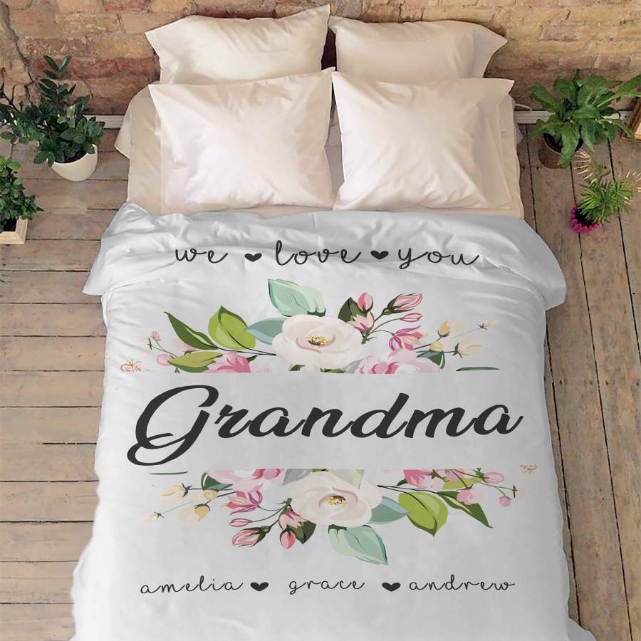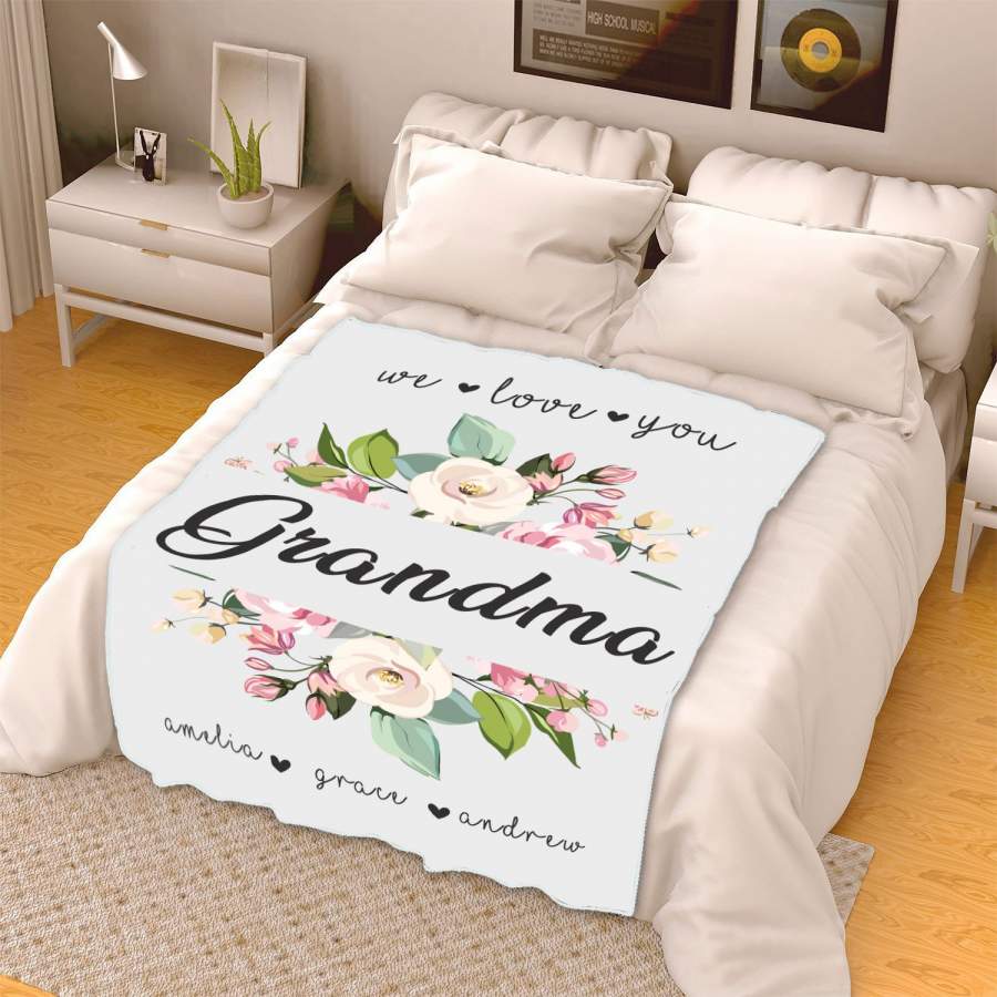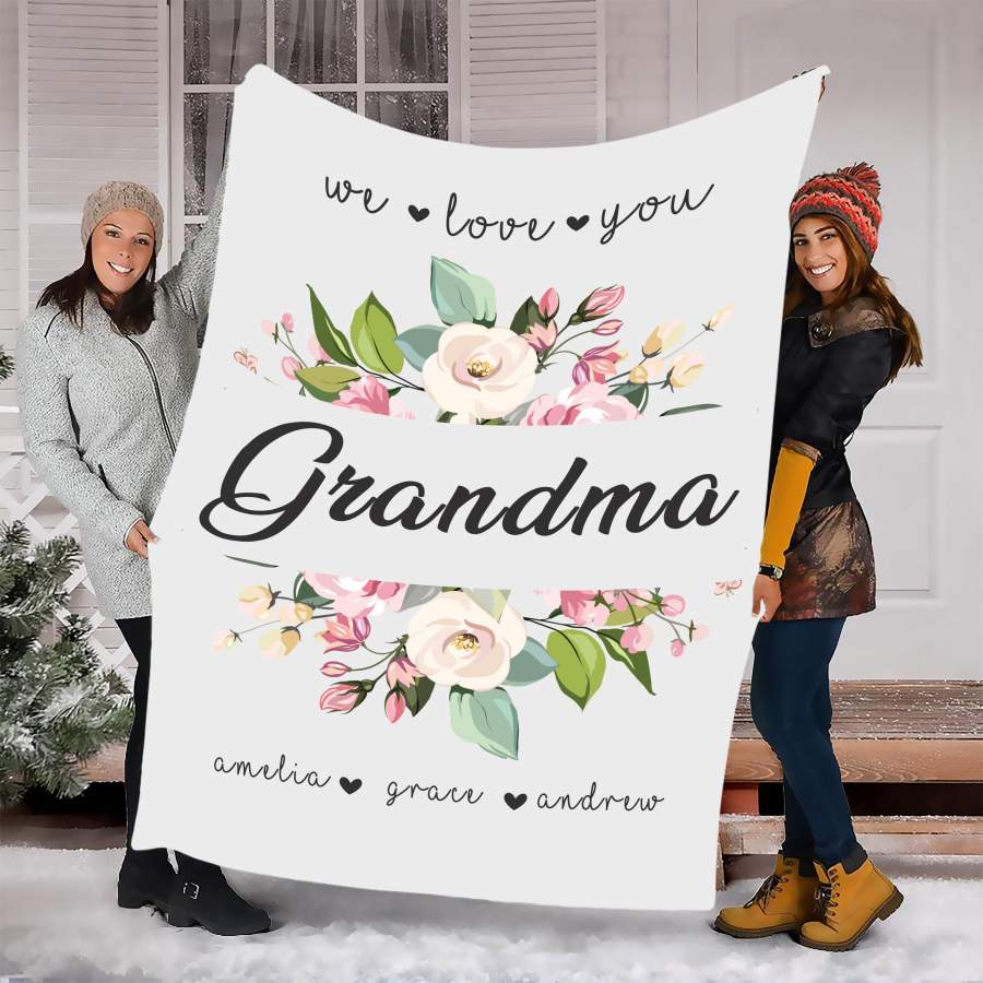 We Love You Grandma Customized Blanket With Grand Kids Names
