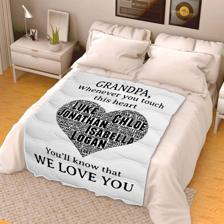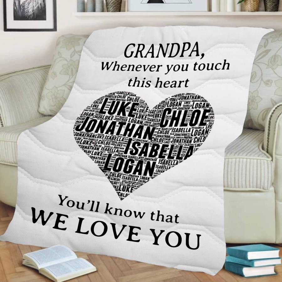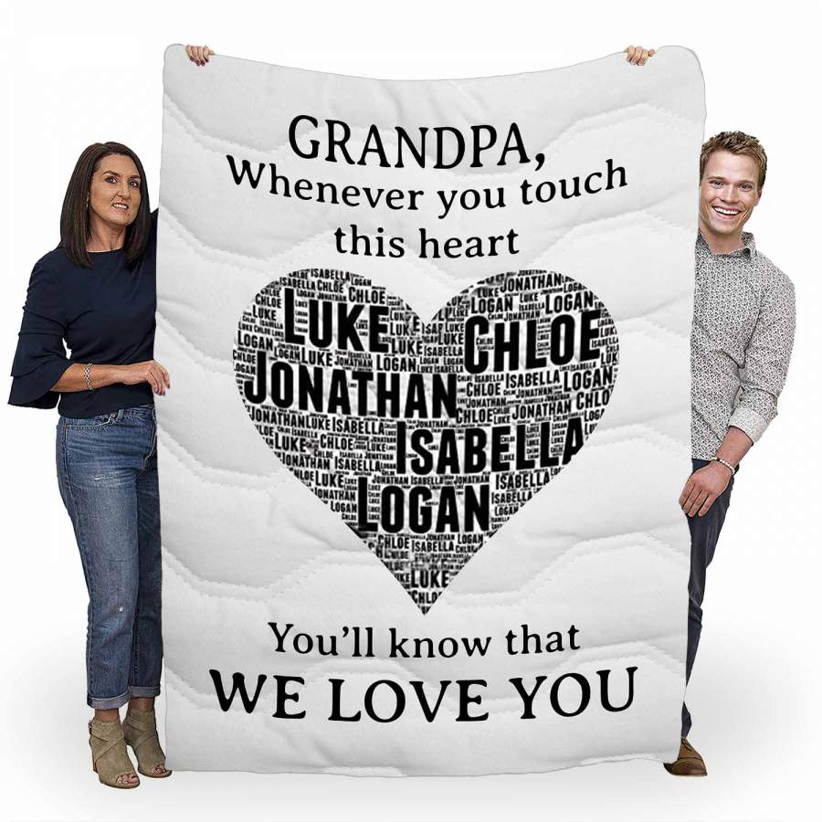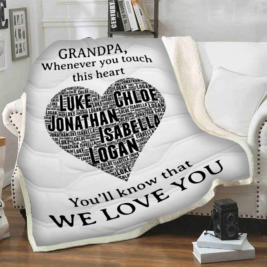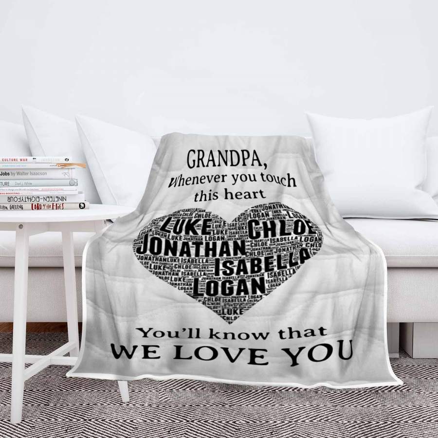 We Love You Grandpa, Personalized Blanket With Grand kids Names
