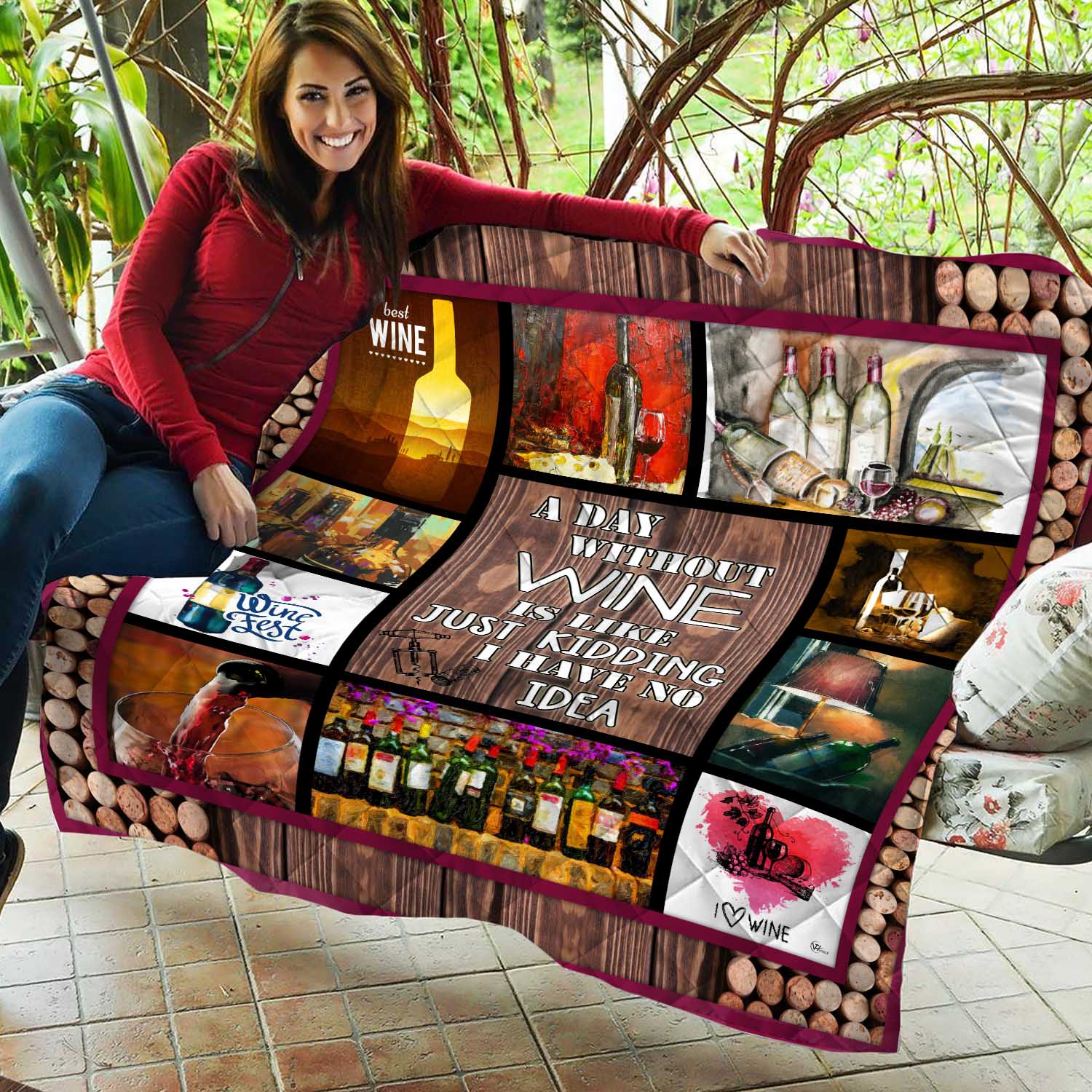 Wine Drinking Lovers Quilt Blanket