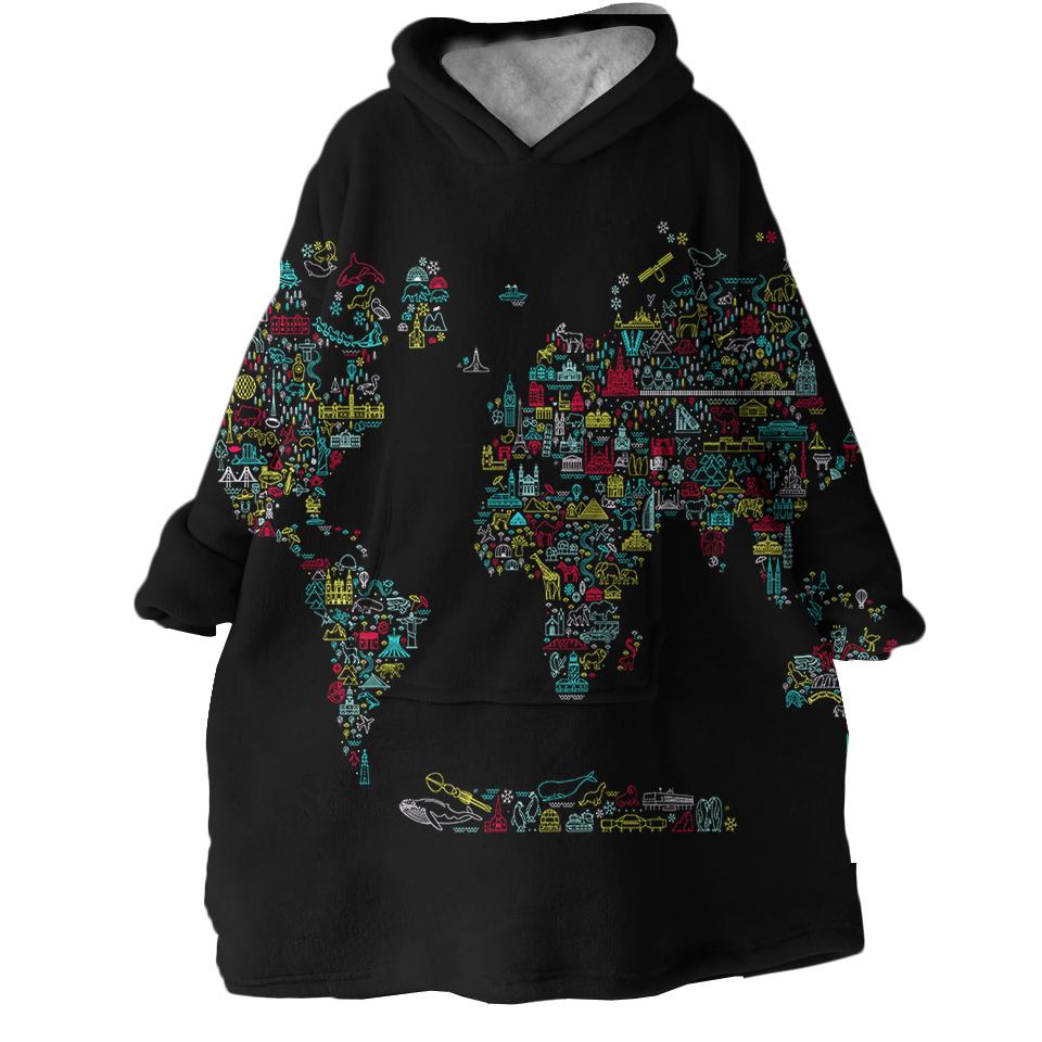 World Map Swlf0473 Hoodie Wearable Blanket