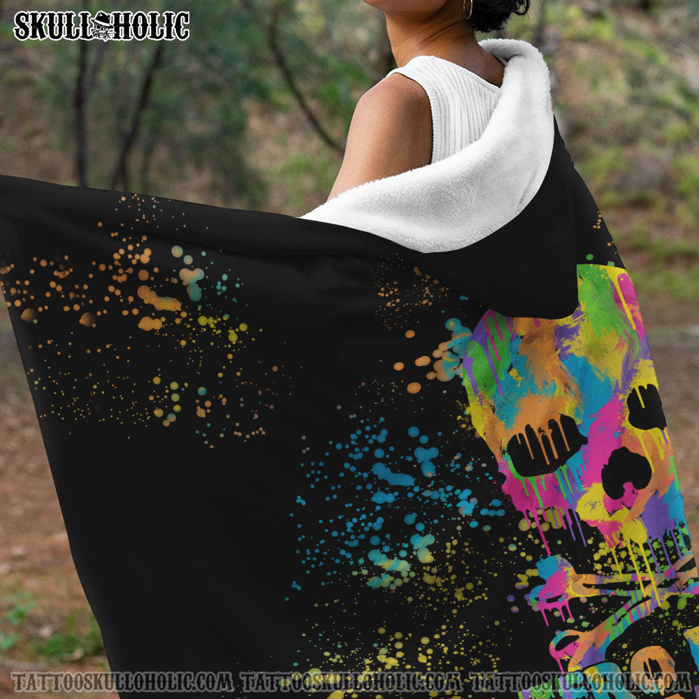 Tshirt2d Zero F Given Skull Bones Melt Colorful Sherpa Blanket Hoodie – Tlnz0912215